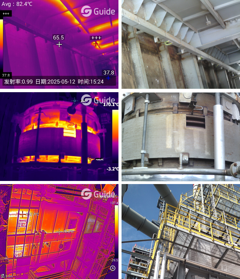 該公司維保負(fù)責(zé)人反饋:高德智感紅外熱像儀成像更清晰,全景拼接功能更適合全局檢測(cè)反應(yīng)爐的耐損情況。
