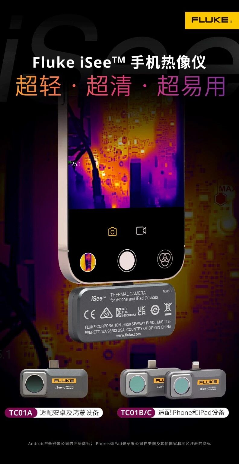 Fluke iSee手機熱像儀,非接觸、快速進行溫度檢測與故障排查,對溫度管控和換熱設備定期檢修,如換熱器、補水泵、、換熱泵軸承維護等。紅外熱成像可非接觸式測溫,快速準確定位故障點,無需中斷換熱設備即可獲取檢測區(qū)域的實時溫度熱圖像,直觀分析檢測區(qū)域溫度情況。同時可大面積掃描測溫,相較點溫槍多次操作更省時省力,熱分布直觀可視,輔助工人高效排查“跑冒滴漏”,做好設施設備維修養(yǎng)護、調(diào)試工作。