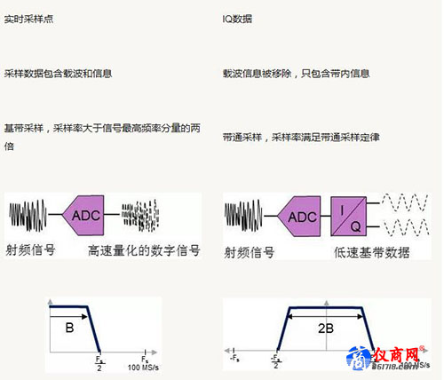 流盤是將儀器設(shè)備采集或處理后的數(shù)據(jù)實時、連續(xù)的傳輸?shù)酱鎯υO(shè)備記錄。數(shù)據(jù)采集前端是傳感器、數(shù)據(jù)采集器或者頻譜分析儀等測試儀表。采集和記錄的數(shù)據(jù)是實時采樣點或者經(jīng)過處理的IQ數(shù)據(jù)。兩種記錄數(shù)據(jù)區(qū)別如表1所示: