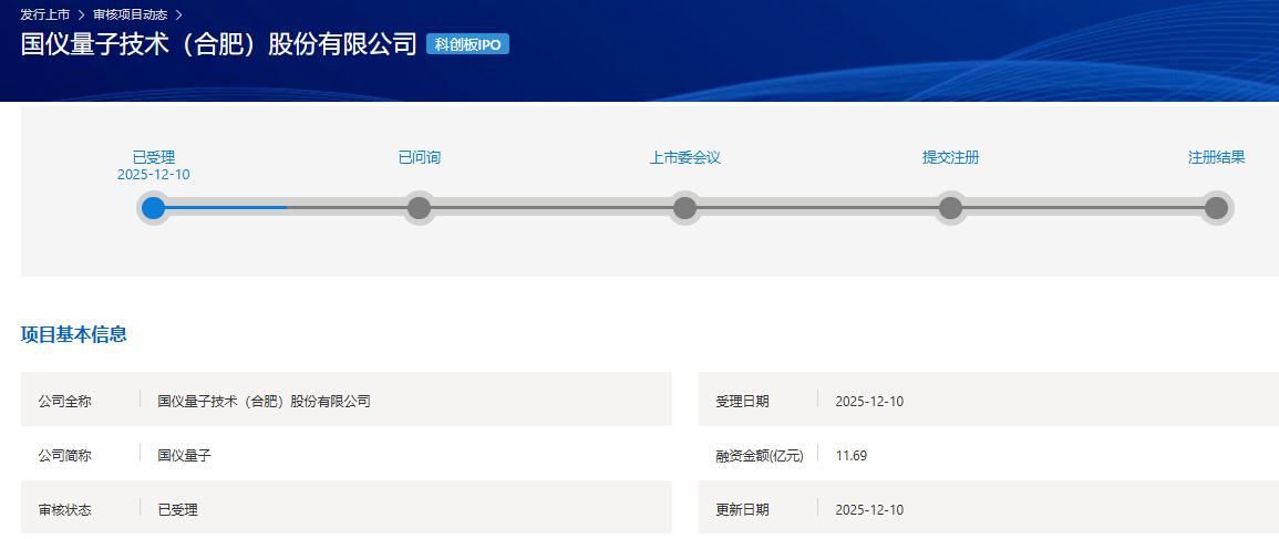 國(guó)儀量子科創(chuàng)板IPO獲受理,擬募資金額11.69億元