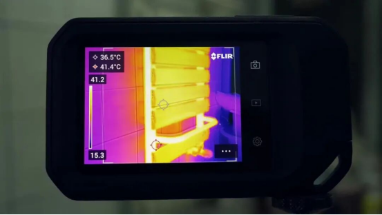在確定了問題區(qū)域后,Flir C8熱像儀還能指導(dǎo)維修人員進(jìn)行精準(zhǔn)操作。如排氣操作時(shí),維修人員可以實(shí)時(shí)觀察到暖氣片溫度的變化,確保氣體完全排出,恢復(fù)暖氣的正常供熱。