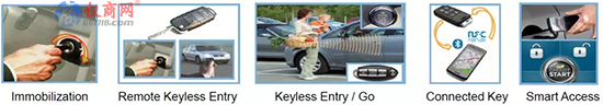 隨著移動(dòng)互聯(lián)時(shí)代的到來(lái),智能鑰匙更受到年輕用戶的青睞,用戶可以通過(guò)手機(jī)APP(NFC/BLE)或者智能手環(huán)/手表來(lái)開(kāi)啟車門以啟動(dòng)車輛。