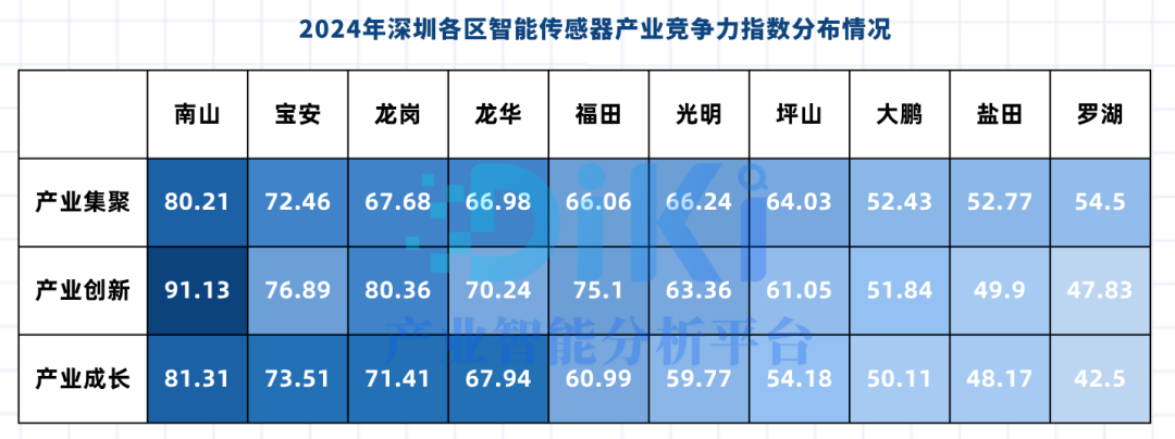 2024年,深圳南山區(qū)、寶安區(qū)、龍崗區(qū)、龍華區(qū)、福田區(qū)、光明區(qū)產(chǎn)業(yè)指數(shù)排名前列,產(chǎn)業(yè)發(fā)展趨勢良好,其中南山區(qū)競爭力指數(shù)排名第一,產(chǎn)業(yè)集聚及創(chuàng)新效應(yīng)優(yōu)勢明顯。