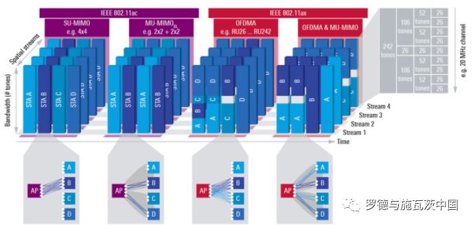 從802.11ac到802.11ax的演進,覆蓋了上下行鏈路中的OFDMA和MU-MIMO。
