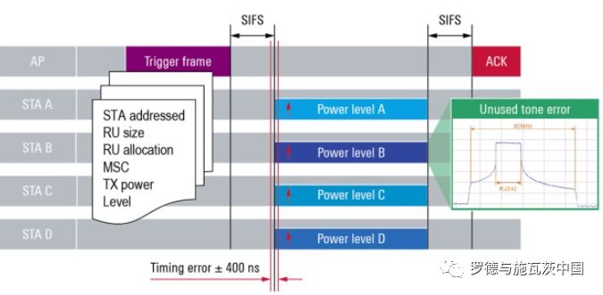 這項IEEE 802.11ax(Wi-Fi 6)標準的WLAN傳輸技術,其最大創(chuàng)新之處在于引入了正交頻分多址(OFDMA)技術,該技術是以前在無線局域網中使用的正交頻分復用技術所對應的多用戶版本。通過共享可用帶寬,多個用戶可以同時處于激活狀態(tài)。這項技術為WLAN設備的開發(fā)商提出了新的挑戰(zhàn),并大大擴展了Wi-Fi 6設備認證測試的范圍。