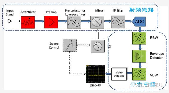 前端衰減器:調節(jié)信號幅度,防止過載、增益壓縮、失真。一般基于參考電平值自動設置。