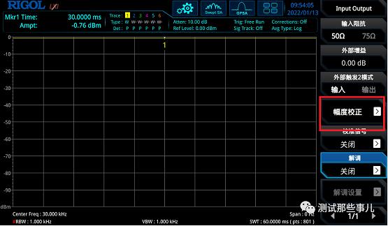 當 DUT 連接至經過校準的分析儀后,信號傳遞網絡(圖 1)可能會出現減損,或者致使被測信號發(fā)生改變。只有對這些效應進行適當修正或補償,才能確保最佳精度。在頻譜分析儀中,幅度校正功能采用一系列頻率/幅度配對,將其進行線性連接,以產生對應測量顯示點的校正系數。然后再依據修正結果調整顯示的幅度。保證測量結果中信號傳遞網絡的不良衰減和增益均已被消除,這為信號分析儀提供了完全符合規(guī)范的精度。比如說RIGOL的頻譜分析儀RSA系列在【Input/Output】按鍵菜單下就有【幅度校正】相關的功能。