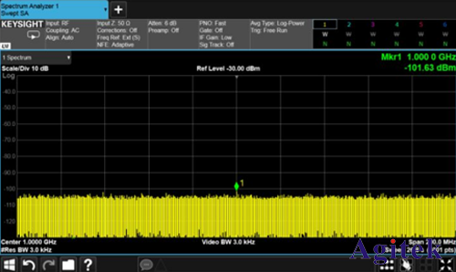 在圖 1 中可看到,將分辨率帶寬從 100 kHz 更改為 10 kHz,便能夠?qū)γ黠@的 –103 dBm 信號進行更準確的測量:分辨率帶寬 減少 10 倍可使 DANL 提升 10 dB。