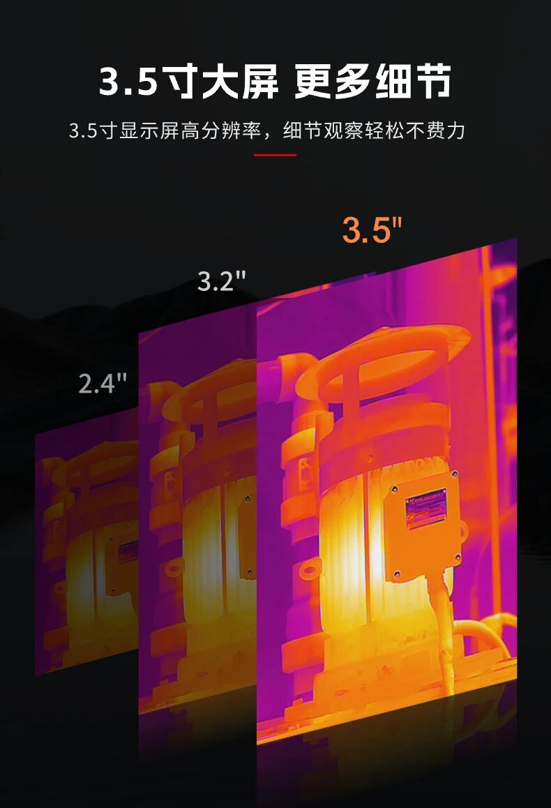 該產(chǎn)品主打3.5寸大屏,顯示效果清晰直觀,大幅提升現(xiàn)場(chǎng)檢測(cè)體驗(yàn)。搭載384×288紅外分辨率,可捕捉更豐富圖像細(xì)節(jié),配合30Hz高幀頻技術(shù),實(shí)時(shí)成像流暢無(wú)拖影,顯著降低操作遺漏風(fēng)險(xiǎn)。