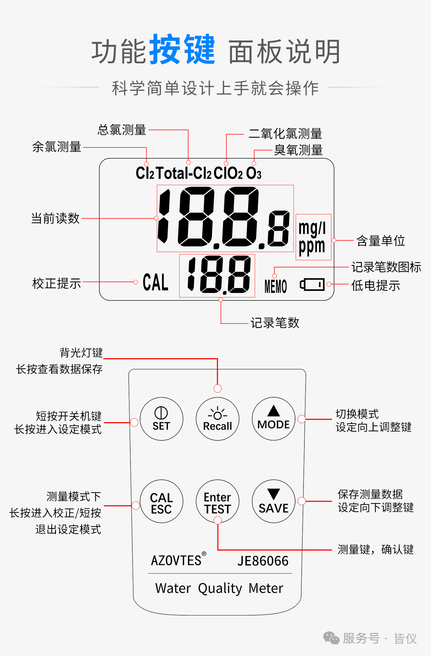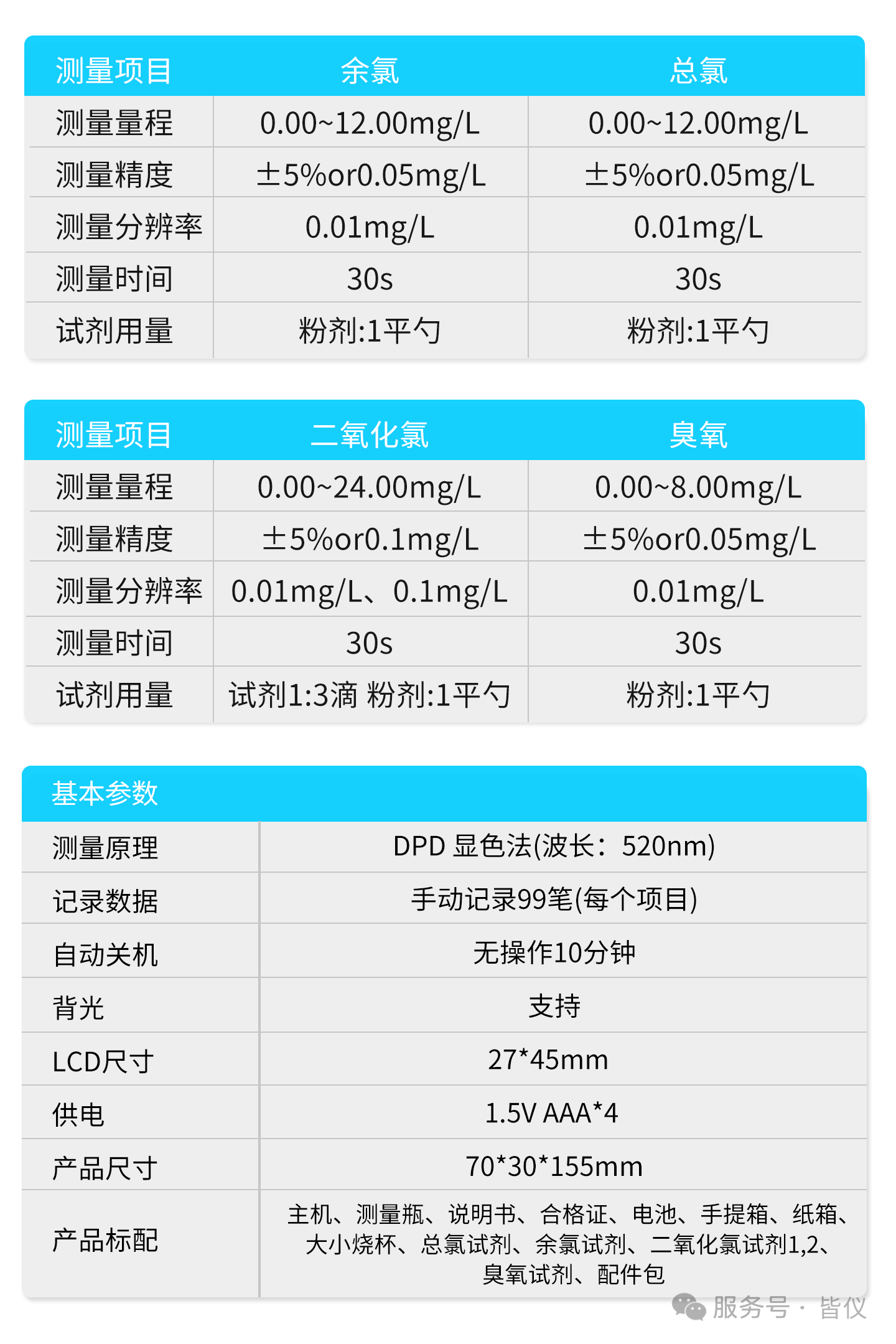 可測(cè)項(xiàng)目:余氯、總氯、二氧化氯、臭氧