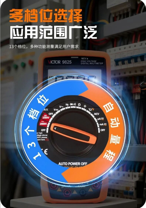 VC9825最引人注目的特性是其高達(dá)2500V的直流/交流電壓測(cè)量能力(需配合高壓附件使用),遠(yuǎn)超普通萬用表的1000V上限。這一特性使其能夠輕松應(yīng)對(duì):